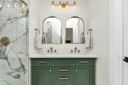 - Neutrale Bäder in Weiß oder Grau können durch kräftige Farben wie Senfgelb, Petrol oder Waldgrün lebendiger wirken.